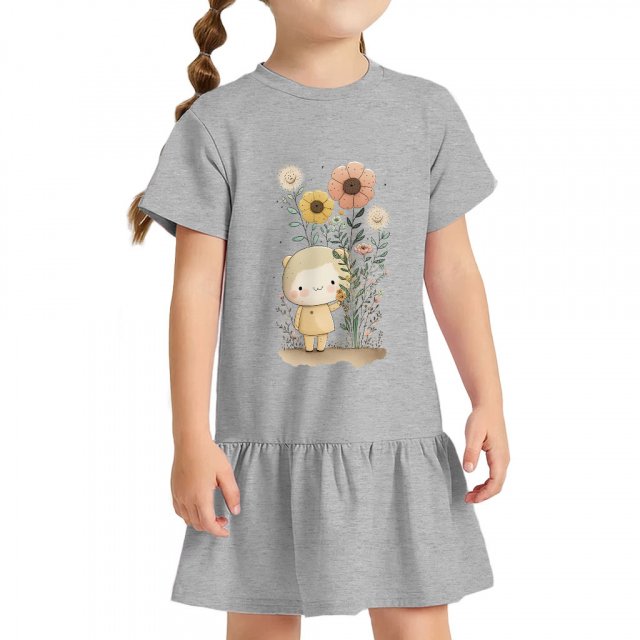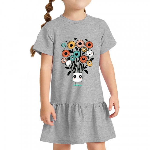 The design is printed on a soft, comfortable, 100% combed ringspun cotton short-sleeve dress. Colorful Flower Toddler Rib Dress will become a staple in your child’s wardrobe.