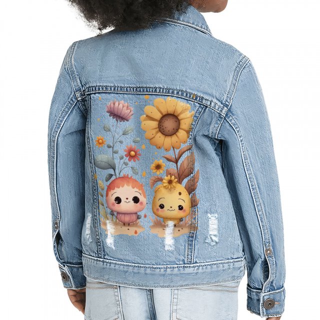 Cute Flower Toddler Denim Jacket – Cartoon Print Jean Jacket – Trendy Design Denim Jacket for Kids
