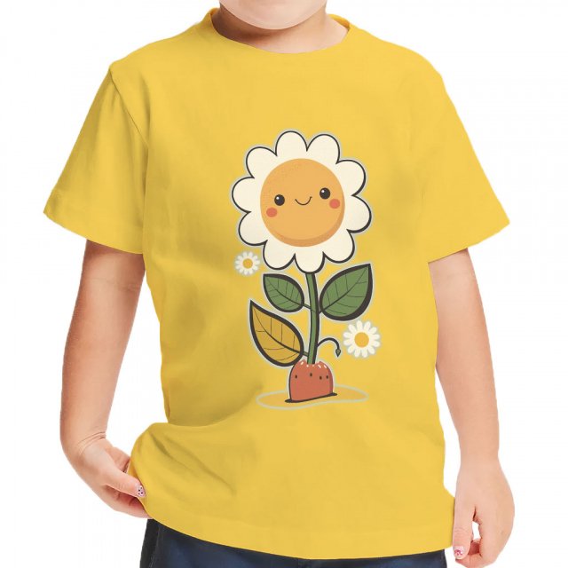 Daisy Print Girls’ Ruffle Neck T-Shirt – Kawaii Toddler T-Shirt – Cool Design Ruffle Neck Tee