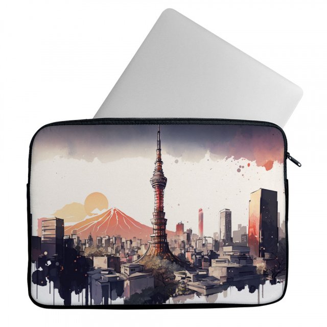 Tokyo Tower 2-Sided Print Mac Book Pro 16″ Sleeve – Watercolor Design Laptop Sleeve – Printed Mac Book Sleeve